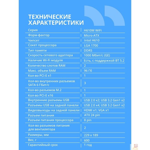 | Комплектация | мат. плата, заглушка, кабель, диск с драйверами |