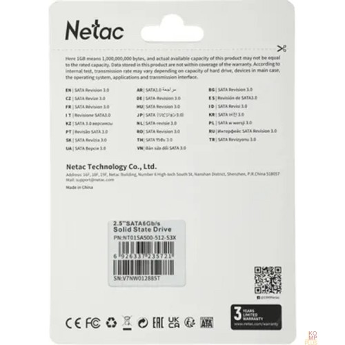 | описание | SSD накопитель NT01SA500-512-S3X от компании Netac |